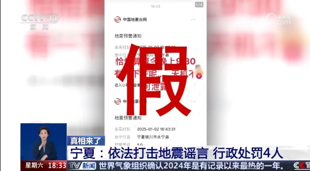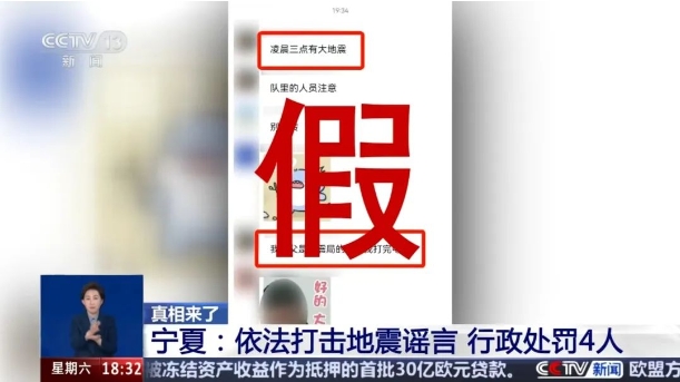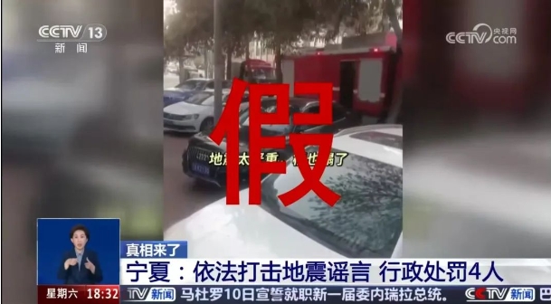 中央電視臺(tái)新聞?lì)l道《共同關(guān)注》欄目以《真相來了:這些都是謠言》為題,報(bào)道了寧夏銀川市公安機(jī)關(guān)打擊處理的4起典型網(wǎng)絡(luò)涉震謠言案件。截至1月11日,監(jiān)測發(fā)現(xiàn)各類謠言及不實(shí)信息87條,依法嚴(yán)厲快查快處網(wǎng)上涉震造謠傳謠活動(dòng),依法給予教育批評(píng)53人,治安拘留4人。