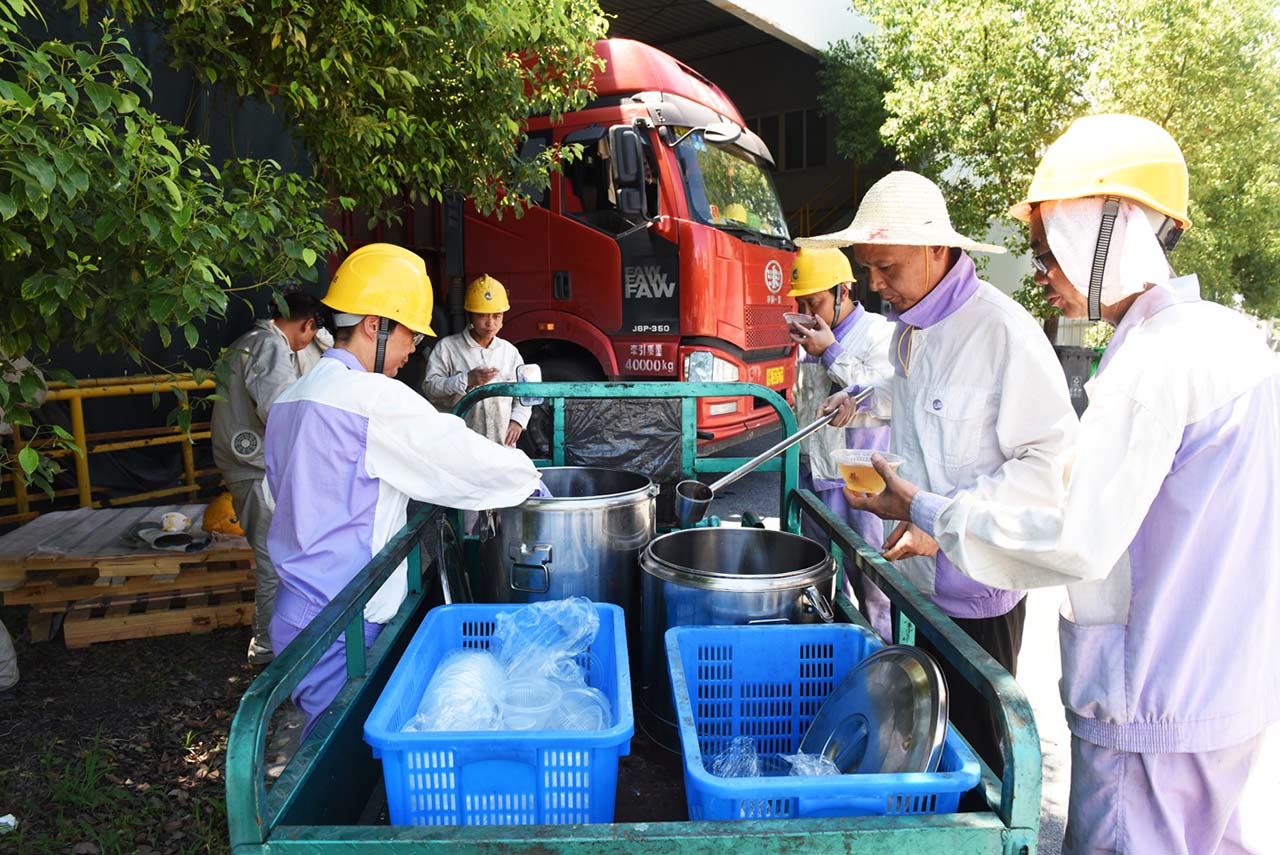 烈日炎炎,酷暑難擋,集團公司廣大員工堅守崗位,奮戰(zhàn)高溫。今天下午,總務部開始為高溫一線員工送上涼爽可口的消暑湯。和往年一樣,氣溫在35℃以上的日子,總務部將在每天下午把解暑湯送到生產現場,冰鎮(zhèn)綠豆、銀耳羹、蝦皮咸菜湯……品種每天有變化,讓員工在酷暑天感受到公司的關懷。保持旺盛干勁。